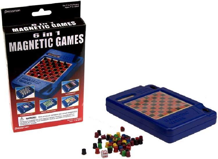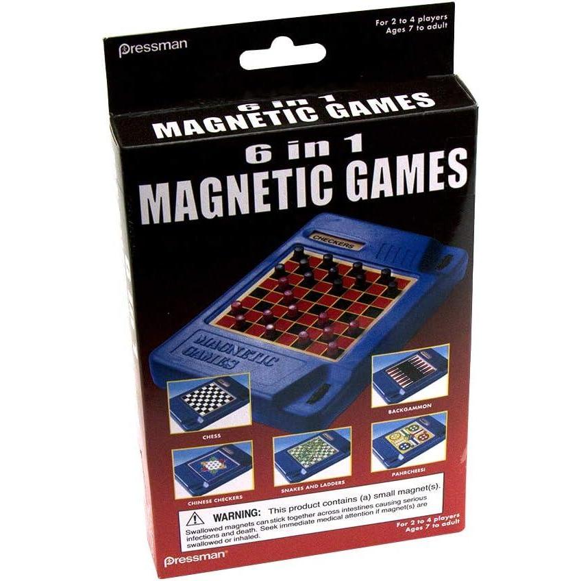 imagePressman 6in1 Travel Magnetic Games  Turn A Knob and A New Game Appears Multi Color 5quot