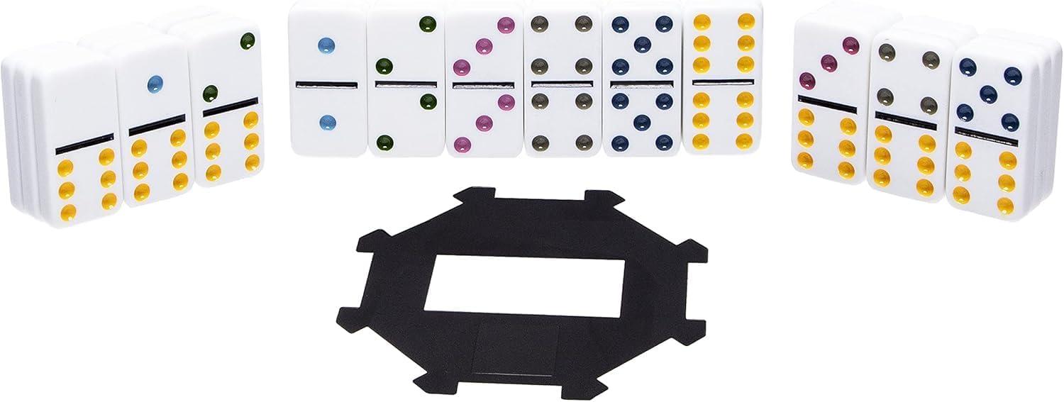 Includes high-quality dominoes with dots in beautiful, rich colors
