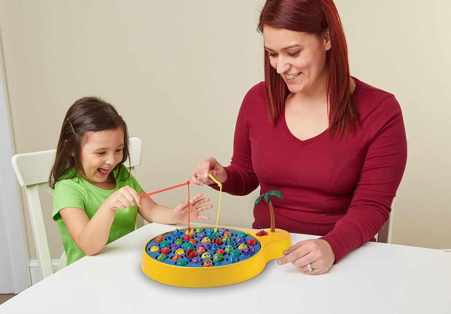The beloved let's go fishing' Game from your childhood goes extra large with this deep sea edition! We have doubled the amount of those adorable sea creatures, and have integrated two varying speeds for an extra challenge. For 2-4 players, ages 4 and up. Requires 2 AA batteries (not included).